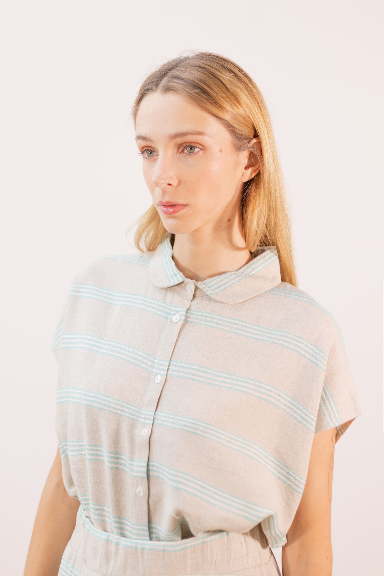 2502129 Blusa Tostada Rayas verdes